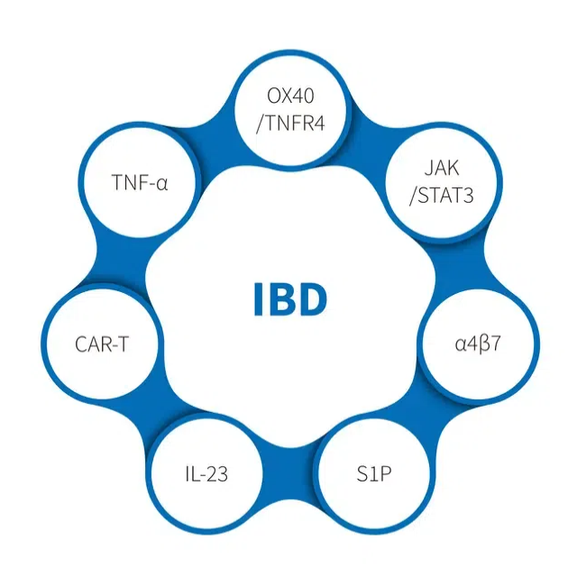Monoklonale antistoffer (mAbs), der er målrettet mod IL-23, bliver i øjeblikket evalueret i kliniske forsøg for IBD. Disse antistoffer virker ved at binde sig til IL-23 og forhindre det i at interagere med dets receptor, og derved hæmme den downstream-signalering, der fører til Th17-aktivering. Hkeybio spiller en afgørende rolle i at støtte udviklingen og afprøvningen af sådanne terapier ved at bruge DSS-modellen til at vurdere effektiviteten og sikkerheden af disse monoklonale antistoffer.