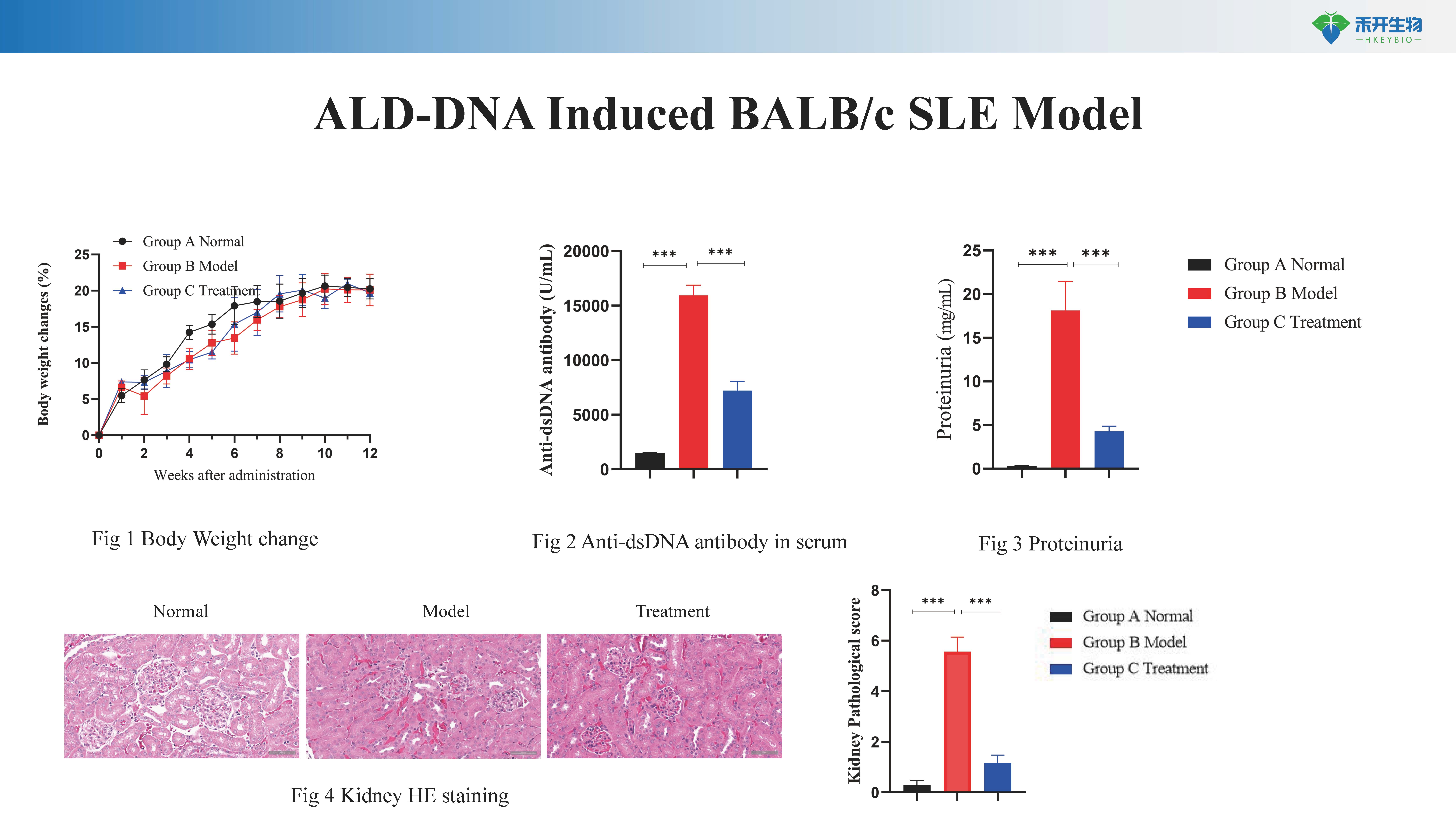 | ● Modelo BALB/c SLE inducido por ADN-ALD 【Mecanismo】 La principal característica del LES es la producción de Abs anti-ADN bicatenario (anti-ADNbc). La inmunización con ADN derivado de linfocitos activado (ALD-DNA) podría inducir un síndrome similar al lupus eritematoso sistémico en ratones singénicos, muy parecido a la patogénesis del LES humano. Este modelo puede ayudar a dilucidar el mecanismo implicado en el desarrollo del LES.