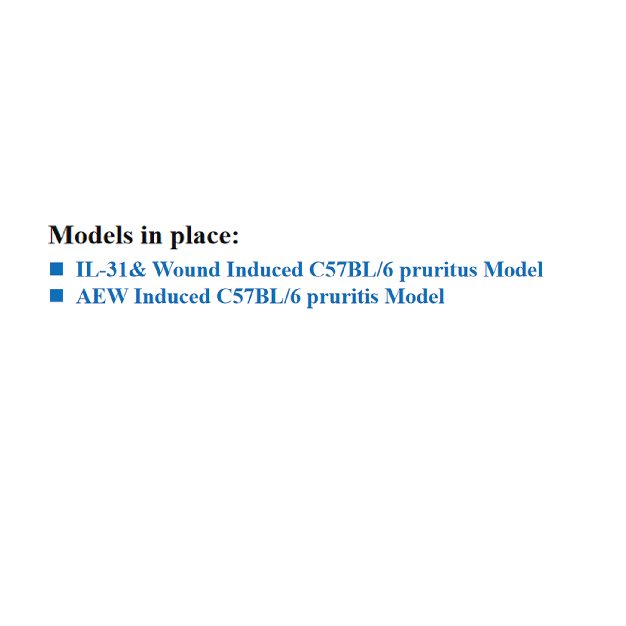 | ● IL-31& របួស Induced C57BL/6 ម៉ូដែល Pruritus 【យន្តការ】ការព្យាបាលមុខរបួសលើស្បែកត្រូវបានផ្សារភ្ជាប់ជាមួយនឹងអារម្មណ៍មិនល្អនៃការរមាស់។ អ្នកវិទ្យាសាស្ត្របានស៊ើបអង្កេតយន្តការដែលស្ថិតនៅក្រោមការរមាស់ប្រភេទនេះ ដោយផ្តោតលើការរួមចំណែកនៃកត្តារលាយដែលបានបញ្ចេញអំឡុងពេលព្យាបាល ហើយបានរកឃើញបរិមាណខ្ពស់នៃ interleukin 31 (IL-31) នៅក្នុងជាលិការបួសស្បែកអំឡុងពេលមានប្រតិកម្មរមាស់ខ្លាំងបំផុត។