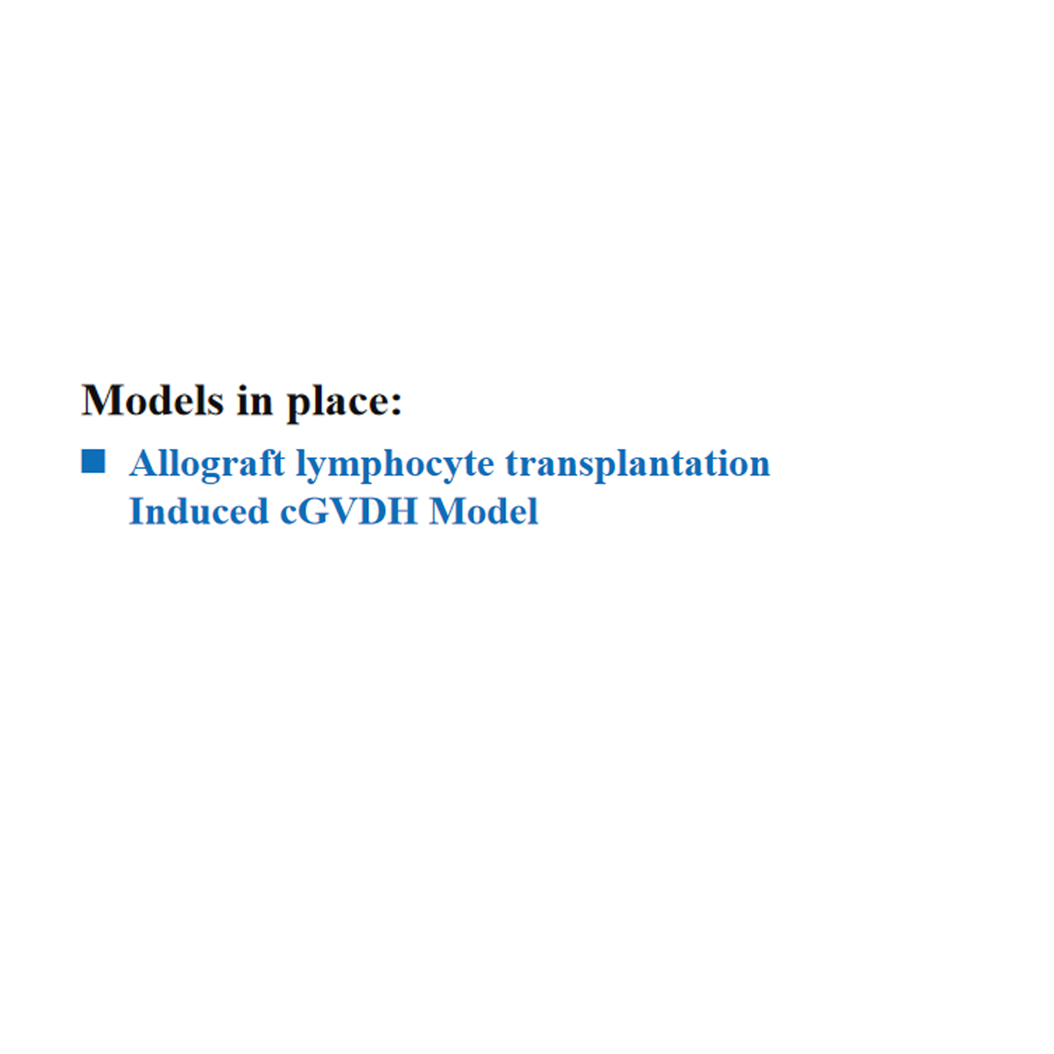 | ● DBA/2 림프구 유도 B6D2F1 cGVHD 모델 【기전】 루푸스와 유사한 병리를 나타내는 자가항체 매개(루푸스 유사) cGvHD 모델은 신염, 담도 간경변, 타액선 섬유증, 림프절병증, 비장종대, 자가항체 생산 및 피부 병리로 인해 나타납니다. 이러한 모델은 MHC 불일치이며 일반적으로 혼합 키메라를 초래하는 부모-F1 이식을 포함합니다. 가장 일반적으로 연구되는 자가항체 모델은 DBA/2 → B6D2F1 모델입니다. 이 모델은 수용자 B 세포의 확장을 초래하여 림프절병증, 비장종대 및 자가항체 생성을 유발합니다.